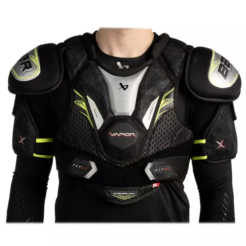 Équipez-vous d’épaulières aussi performantes que belles. Les épaulières BAUER VAPOR FLY40 offrent une nouvelle façon de jouer sur la glace, avec un ajustement plus confortable et plus athlétique. Les nouvelles coques aux épaules procurent la protection que vous recherchez dans une conception fuselée, et le protecteur de sternum flottant amélioré vous permet de réagir rapidement à tout moment.